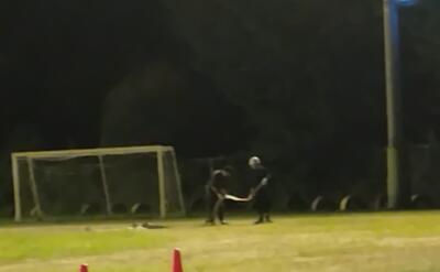 大きな声を出してボールを投げると、ボールは地面と平行に飛んでワンバウンドとなりました。