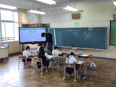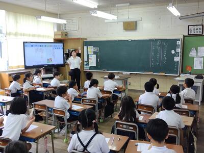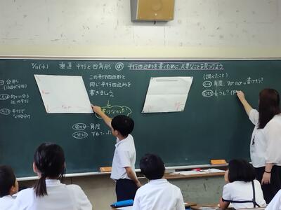 昨日(7月12日)、4年生教室で算数の研究授業を行いました。