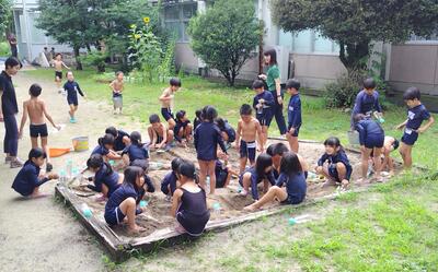 「汚れても大丈夫です。次の時間は水遊びですから!」