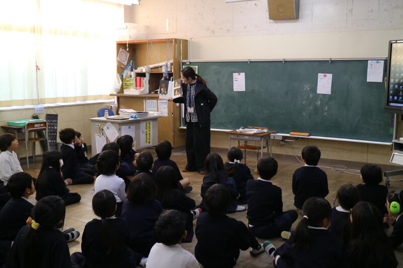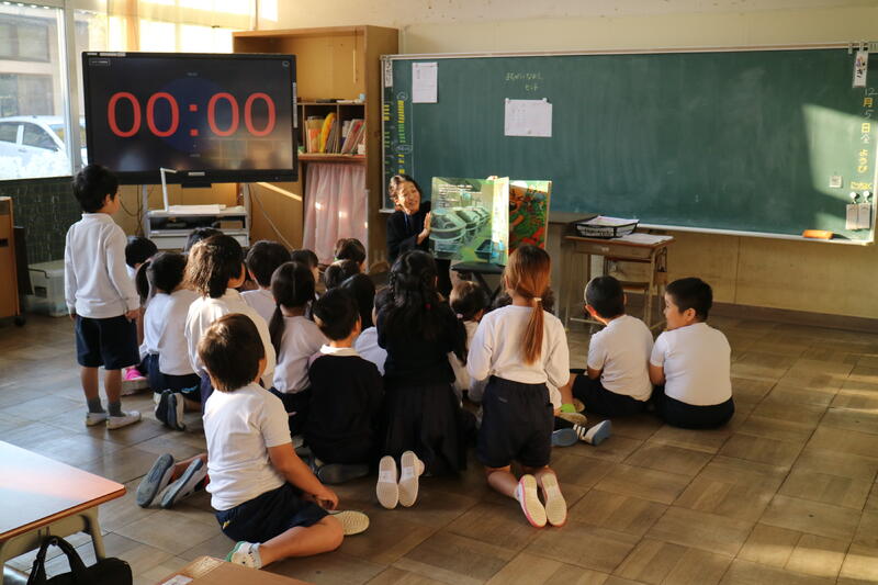 「とても元気な2年生で、たくさん反応してくれ、楽しい読み聞かせの時間となりました。ありがとうございました」