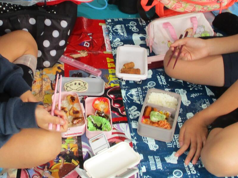 近くにある山都町の体育館でお昼ごはんを食べることができました。