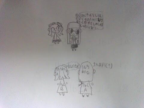 パソコン室のホワイトボードに変な絵がありました。