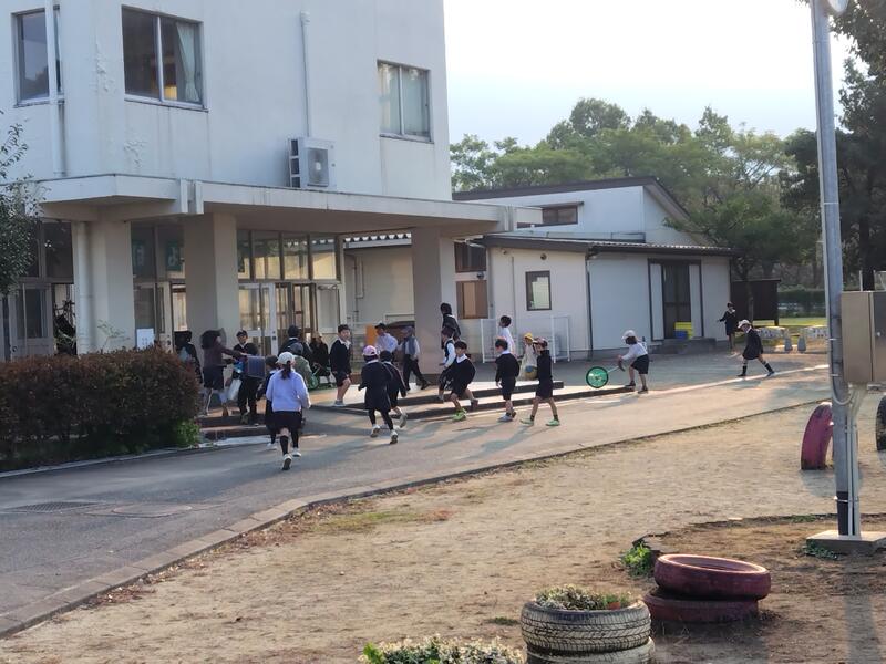 お弁当を食べ終わった後、東小学校と南小学校でふえ鬼をして、