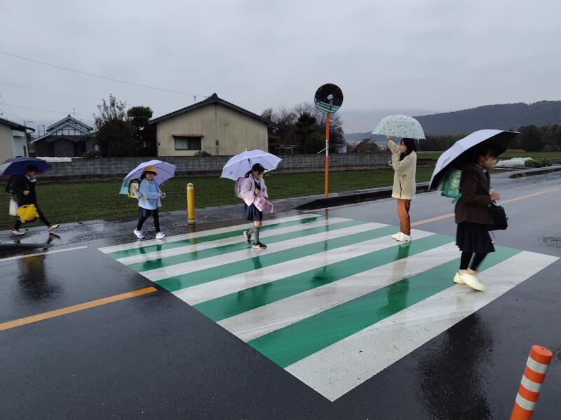 大津地区交通安全協会大津支部の方々、学校協働活動推進員さんが、今日も交通指導をしてくださっていました。