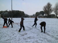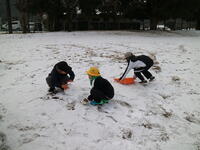 子どもたちが雪を求め、運動場を駆けずり回っています。