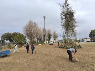 さらに、運動場に散っていた竹の葉や落ち葉などきれいに掃除していただきました。