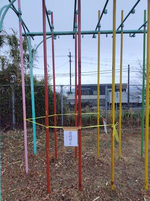 立てた竹をわら縄でぐるぐる巻きにして固定したところでした。