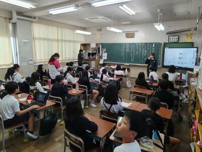 5年生が、英語専科の先生と一緒に英語を楽しんでいました。