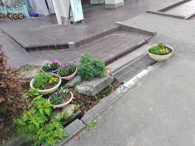 「足場が悪く、ブロックが壊れているので、プランターでブロックしています」