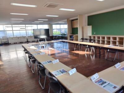 学校運営協議会委員の皆様をお迎えし、体育館の保護者席はほぼ満席となりました。