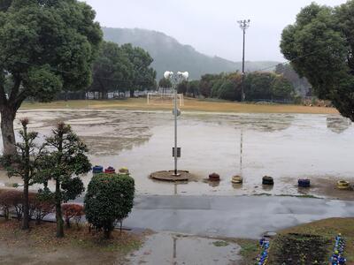 運動場に水がたまっています・・・