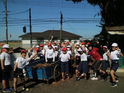 4校時は、3・4年生による体育館横駐車場、鳥小屋の落ち葉の移動や除草作業でした。