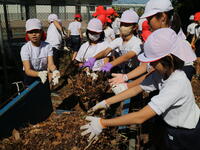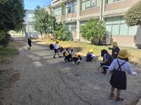 4校時は、3・4年生による体育館横駐車場、鳥小屋の落ち葉の移動や除草作業でした。