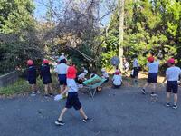 体育館裏側の草、落ち葉をガンガン除去していきます。