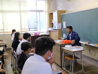 城山小学校の集会場で準備をしていただいていた講師の八木さんからお話をうかがいました。
