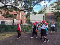 子供たちが教室にもどると、陣内幼稚園の先生と職場体験の高校生が、幼稚園の運動会の準備を始められました。