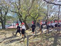 子供たちが教室にもどると、陣内幼稚園の先生と職場体験の高校生が、幼稚園の運動会の準備を始められました。