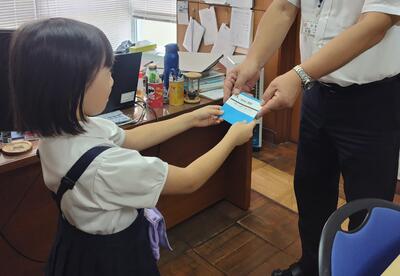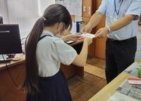 昼休みに、2年生が読書ページ通帳発行にやって来ました。