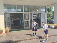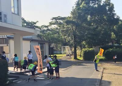 自分たちの意思とがんばりで、今朝も、大きな声であいさつ運動をやっています。
