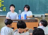 2時間目、1年生の子供たちがペットボトルに入った青い水に釘付けになっていました!