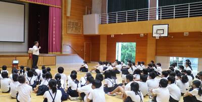 まず、大雨のため7月2日(土)の「第72回 社会を明るくする運動」「第28回大津町人権・同和教育推進大会」「第13回子どもの未来をつくる推進大会」で発表できなかった4年生に、人権作文を発表してもらいました。