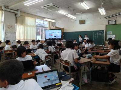 司会者を中心に、ロイロノートを使って会議が進められていました。