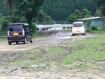 ぬかるんだ運動場に、公務員さんの誘導でアッという間に車が並んでいきました。