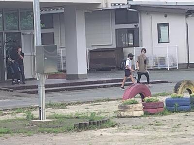 ※職員室前駐車場に止めた車が正門から出ようとしたため、入って来る車を遮ったり、自分の車に児童を乗せるために、運動場に入ろうとしている車を止めたりする人がいました・・・