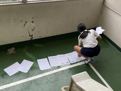 雨が降り込んでいた廊下を、5年生の女の子がぞうきんで拭いていたそうです。