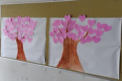 4・5・6年生用のハートの木が少しずつ咲き始めていました。