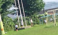 日陰のブランコで遊ぶ人がチラホラ見えます。