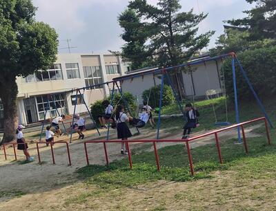 サッカーが2チーム、ブランコ、2年生の野菜のお世話で、久しぶりに活気を取り戻しています。