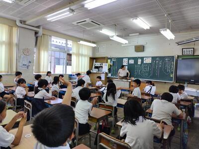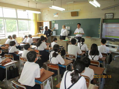 1時間目、町職のG.T.(ゲスト・ティーチャー)をお迎えし、6年生の授業がありました。