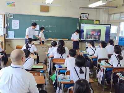 英語専科の先生とALTの先生と豪華な顔ぶれがそろい、先生方の穏やかな語りが6年生の雰囲気とマッチし、とても積極的な発言が続く、すてきな授業が展開されていました。