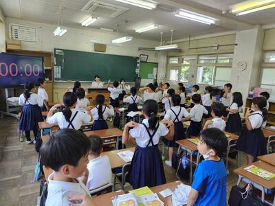 町の歯科衛生士をお迎えし、養護教諭と担任で、デンタルクロスも使った歯みがきについて授業を行っていました。