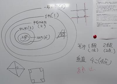 ・最初に、ホワイトボードの真ん中に描いてある「垂直を含む台形」をみんなで点数化