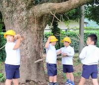 先日、ブログでお伝えした「かずらと頑丈な木の枝を組み合わせたステキなブランコ」をこっそり撤去していたんですが、どうも、再び高学年が途中まで作り、1年生がその後を引き継いだようです・・・