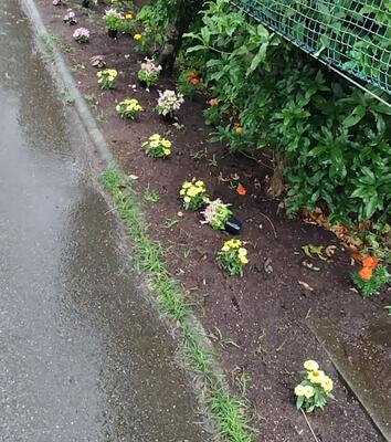 校務員さんが、雨があがった隙間をねらって植えられたようです。