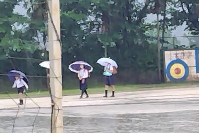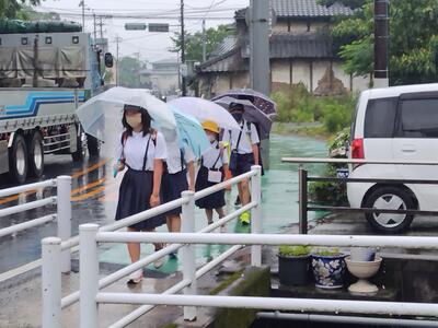雨に加え、風も吹いていたので、登校は大変だったと思います。