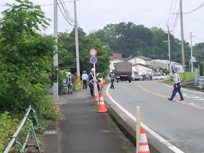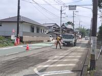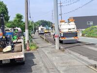 作業車が通り、県道から大きな音が聞こえました。見にいくと、舗装工事の準備をされていました。