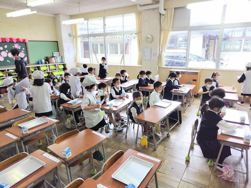 昨日、会議のため、新1年生の初めての給食を見ることができなかったので、今日、のぞきに行きました!