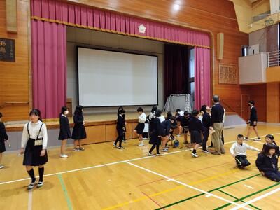 2校時、体育館からにぎやかな声が聞こえてきます。