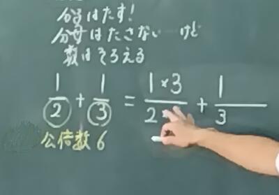 分数をそろえる意味を共有しながら、6が見えた児童の考えを全体に広げていきます。