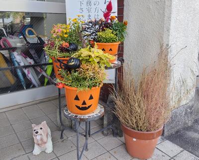 ハロウィンだからということで、バケツの鉢寄せをプレゼントしていただきました。