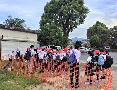 また、地域学校協働活動推進委員さんも、子供たちをサポートしながら登校していただいていました。