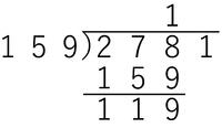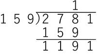 4 次に一の位の1を下ろして、1191÷159を考えます。