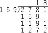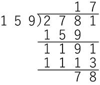 7 最後にわる数159よりも、あまり78が小さいことを確認して、できあがりです。