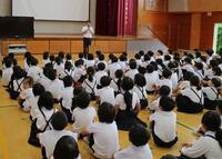 午後の暑い体育館でしたが、しっかりお話を聞いてくれました。