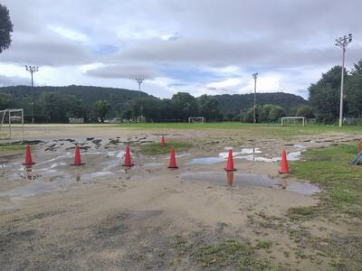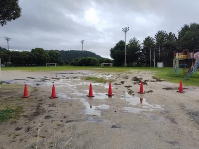 お盆過ぎから、遊具近くの運動場は使えなくなります。