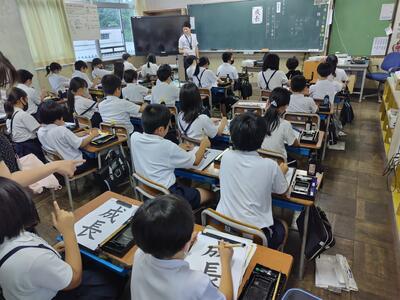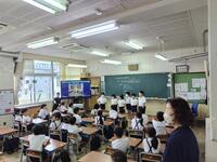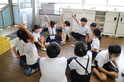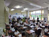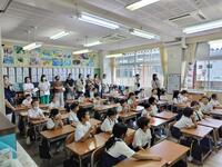 4年生の子供たちが、名残惜しそうに、来校していただいたグリーンロジスティク、星山商店、産業資源循環協会の方をお見送りしていました。